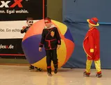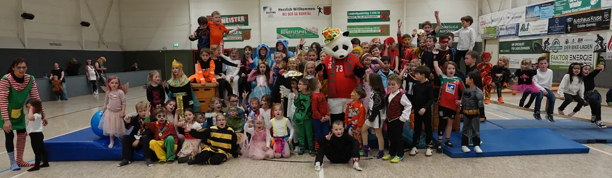 Der absolute Höhepunkt folgte gegen 16:00 Uhr: Unter großem Jubel betrat das Maskottchen der SG Ruhrtal, „Rudi Ruhrtal“, die Halle. Kaum war er da, wurde er auch schon von einer fröhlichen Kinderschar umringt. Hand in Hand zog man gemeinsam eine große Runde durch die Halle – ein bewegendes Bild (im wahrsten Sinne des Wortes). Anschließend wurde ausgelassen getanzt zu den Hits „Oben gute Laune, unten gute Laune“ und „Karnevalsmaus“. Die Kids kannten nicht nur jeden Text, sondern auch jede Bewegung – Rudi hatte sichtlich Mühe, mitzuhalten.