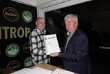 Eine weitere Ehrung galt Sebastian Scharf, der an diesem Abend leider verhindert war. Auch er erhält das Verbandsverdienstzeichen in Silber. Urkunde und Abzeichen werden durch Abteilungsleiter Thorsten Stein persönlich überreicht. Sebastian war über viele Jahre hinweg zunächst als Spieler aktiv und engagierte sich später als Schiedsrichter, Jugendtrainer, im Jugendvorstand sowie als Beisitzer im Abteilungsvorstand.